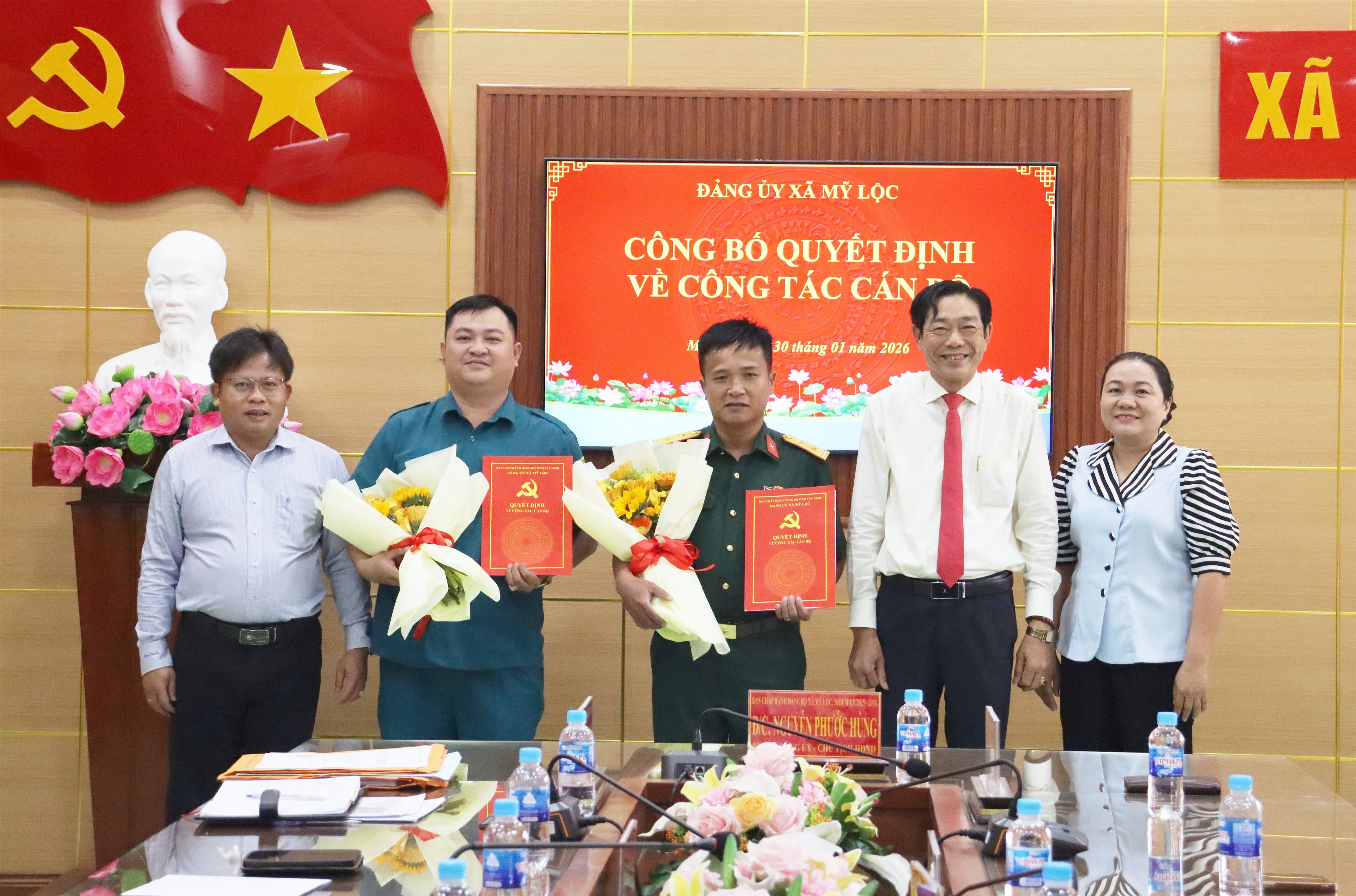 Ngày 02/02/2026, UBND xã Mỹ Lộc tổ chức công bố Quyết định công tác cán bộ. Tham dự có Bí thư Đảng ủy, Chủ tịch HĐND xã - Nguyễn Phước Hùng; Phó Bí thư Thường trực Đảng ủy xã - Trương Thị Phượng...