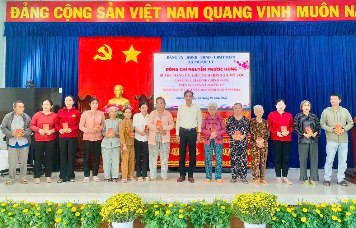 Nhân dịp xuân Bính Ngọ năm 2026, Bí thư Đảng ủy, Chủ tịch HĐND xã Mỹ Lộc – Nguyễn Phước Hùng đến xã Phước Lý trao tặng quà Tết cho gia đình chính sách.