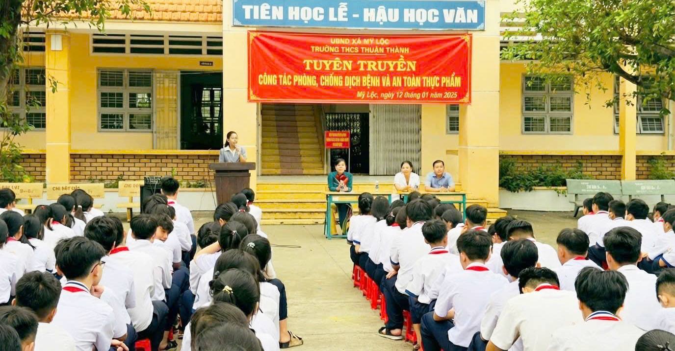 Trạm Y tế xã Mỹ Lộc phối hợp Trường THCS Thuận Thành tổ chức tuyên truyền phòng, chống dịch bệnh và an toàn thực phẩm cho học sinh của trường.
